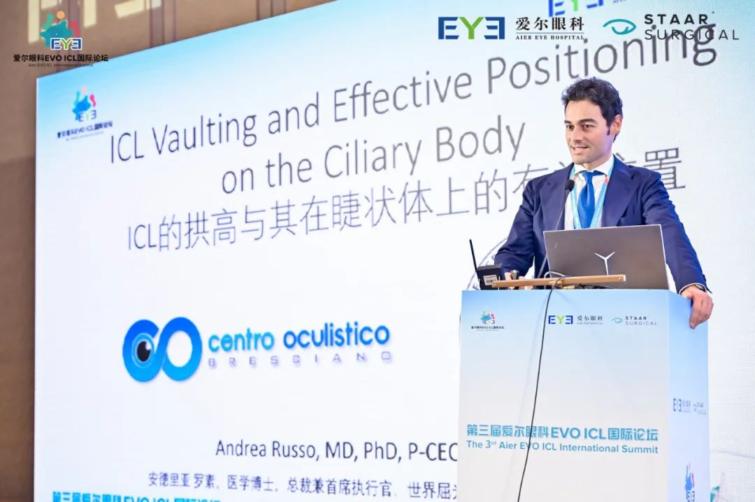 Andrea Russo博士则带来了一场具备国际视野的ICL手术科普分享《揭秘EVO ICL:清晰安全的矫正方式》,分别从ICL手术原理、突出优势及适宜人群等方面入手,让大家更全面、深入地了解这一术式。